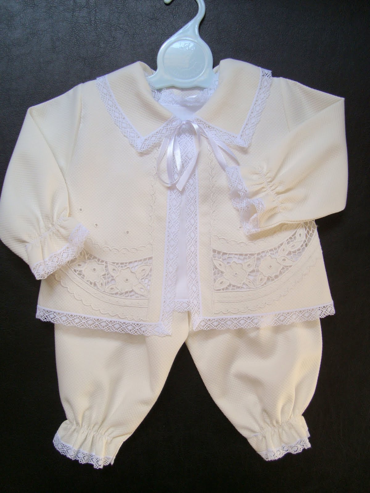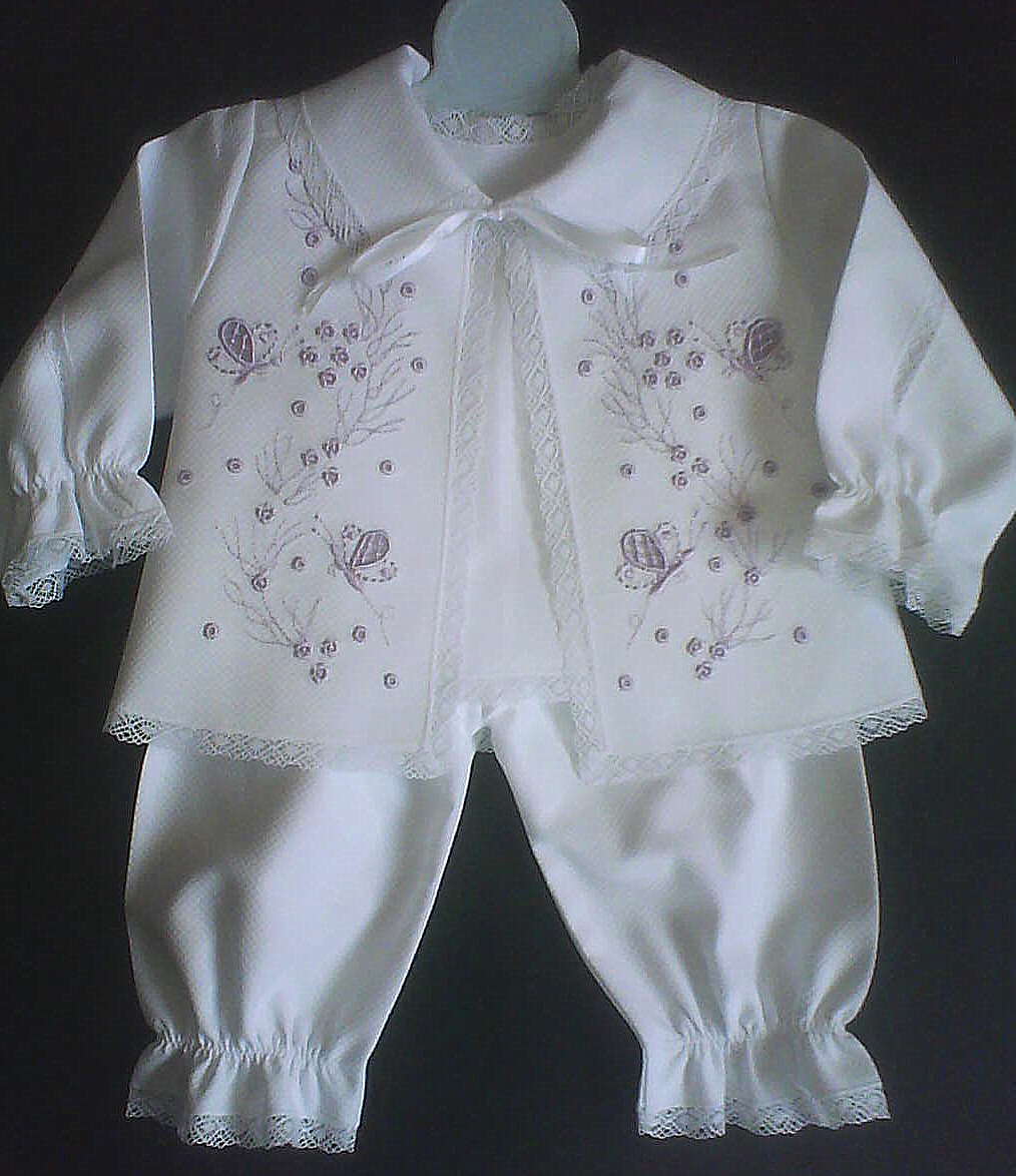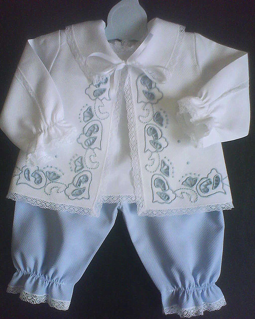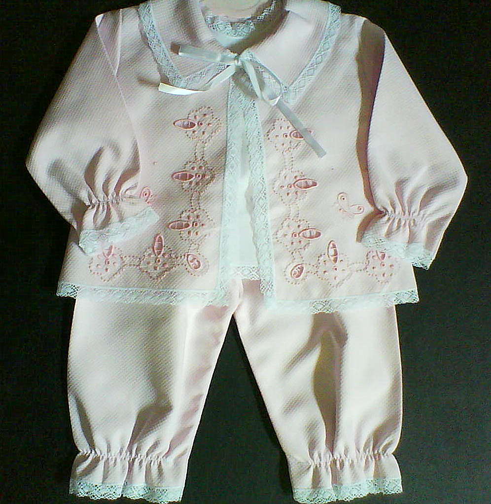 | Conjunto 01 - bordado à máquina com rendas de entremeio |