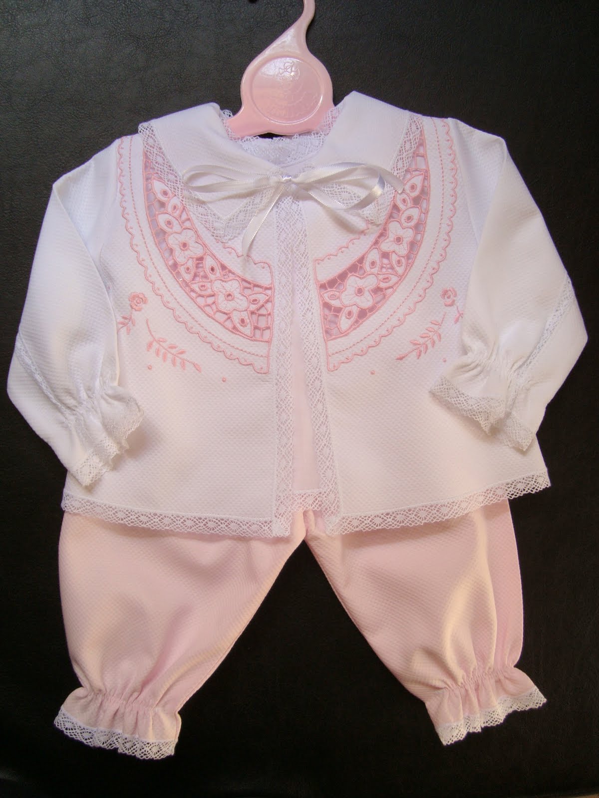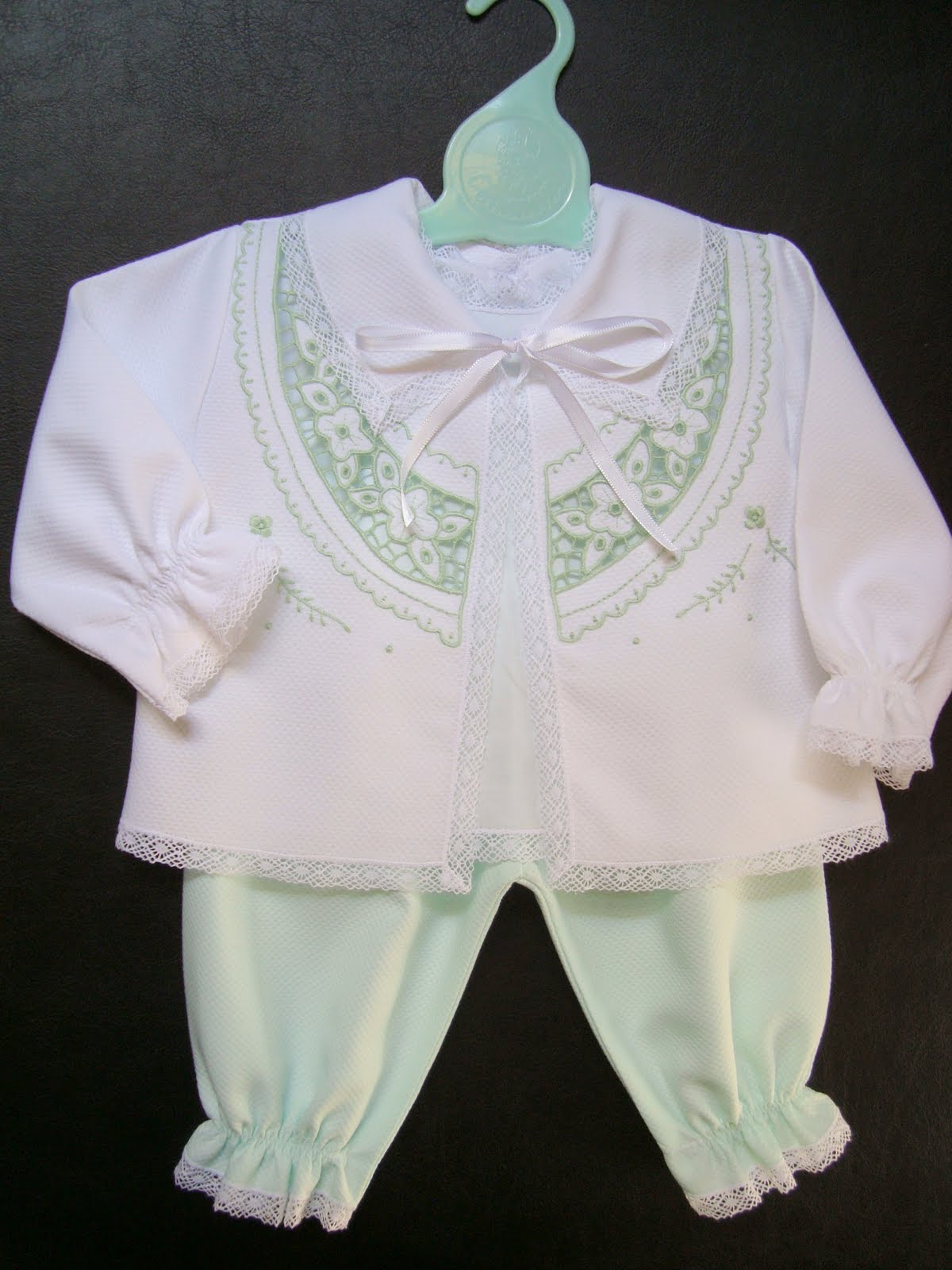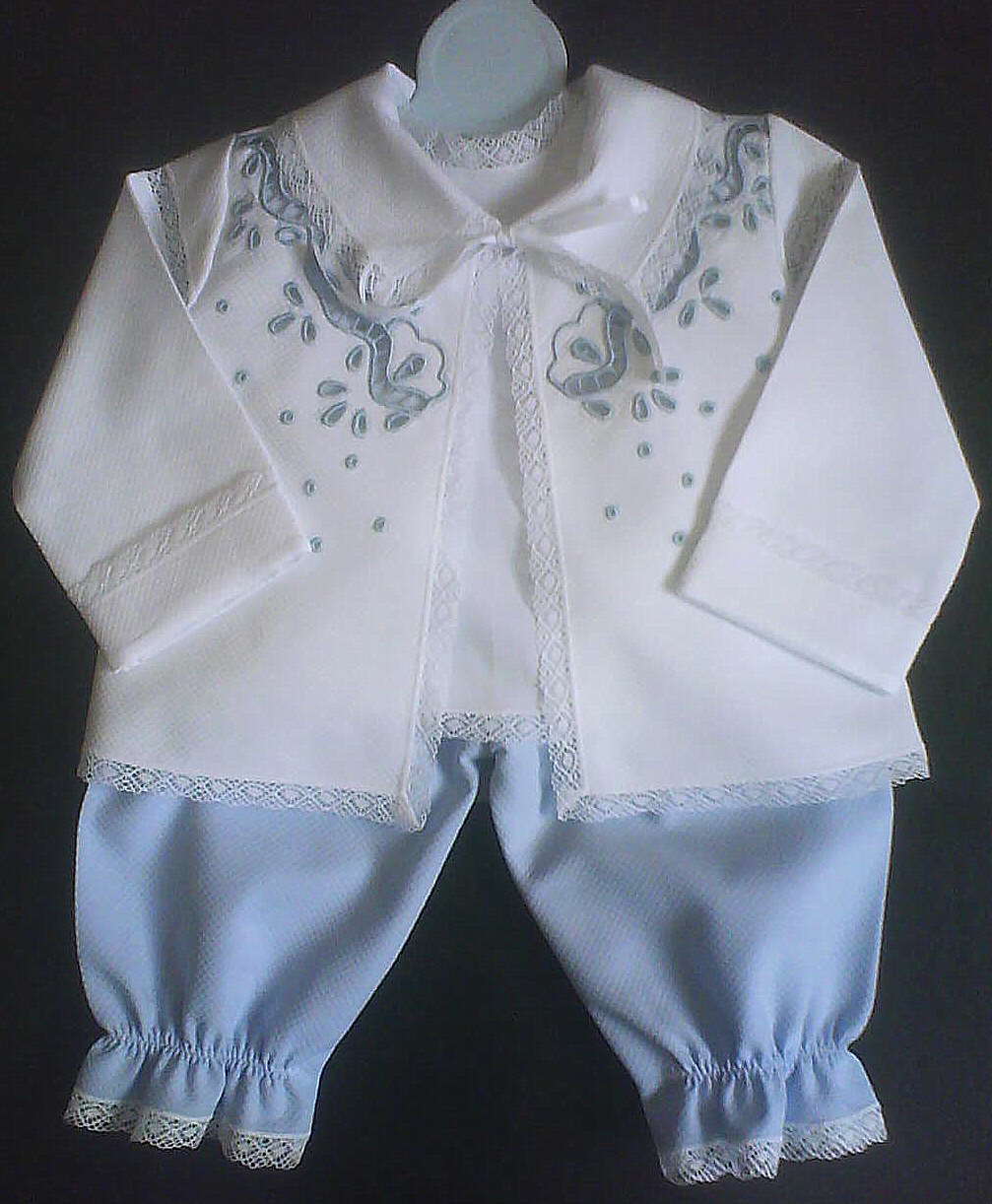 | Conjunto 01 - bordado à máquina com rendas de entremeio |