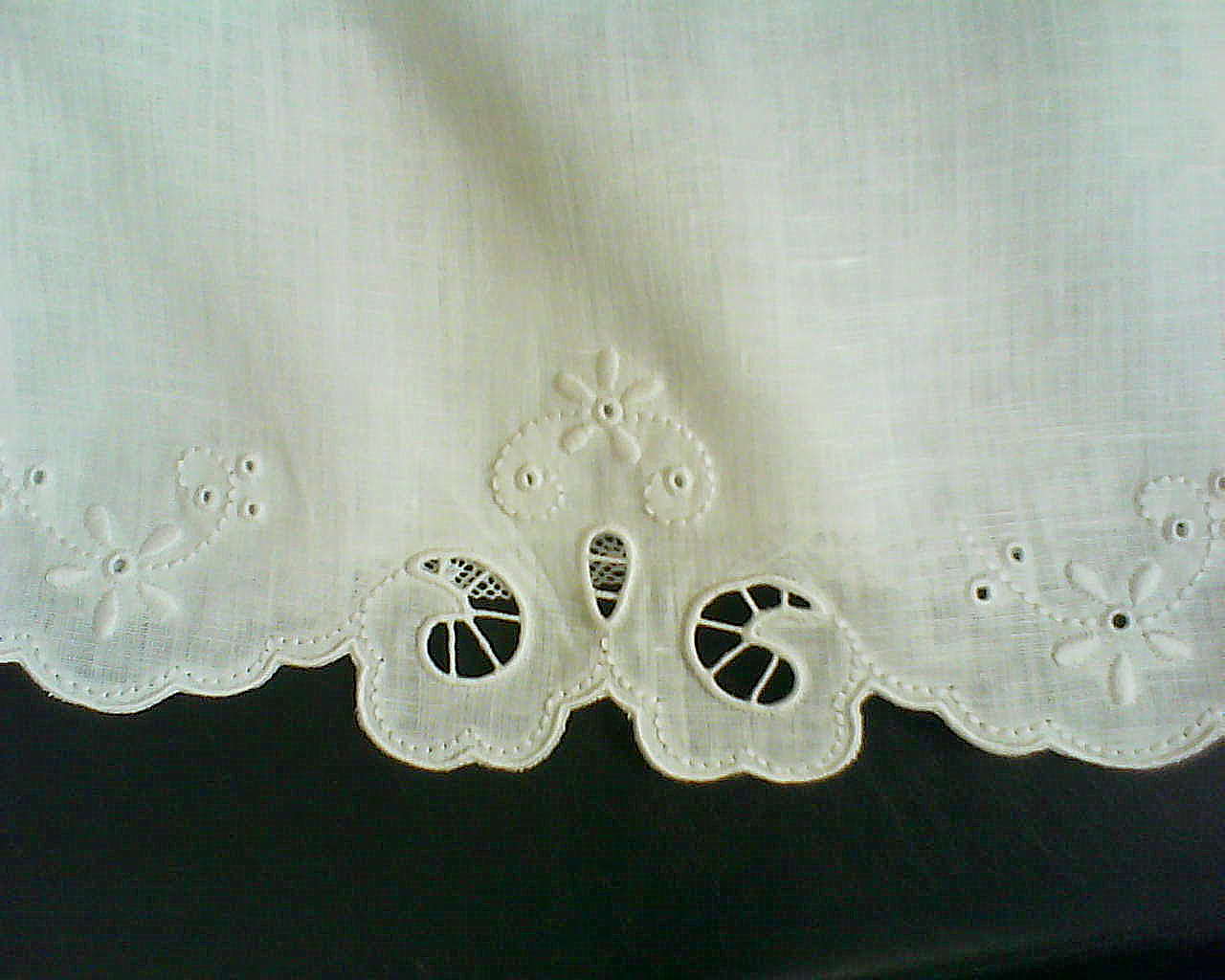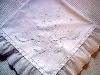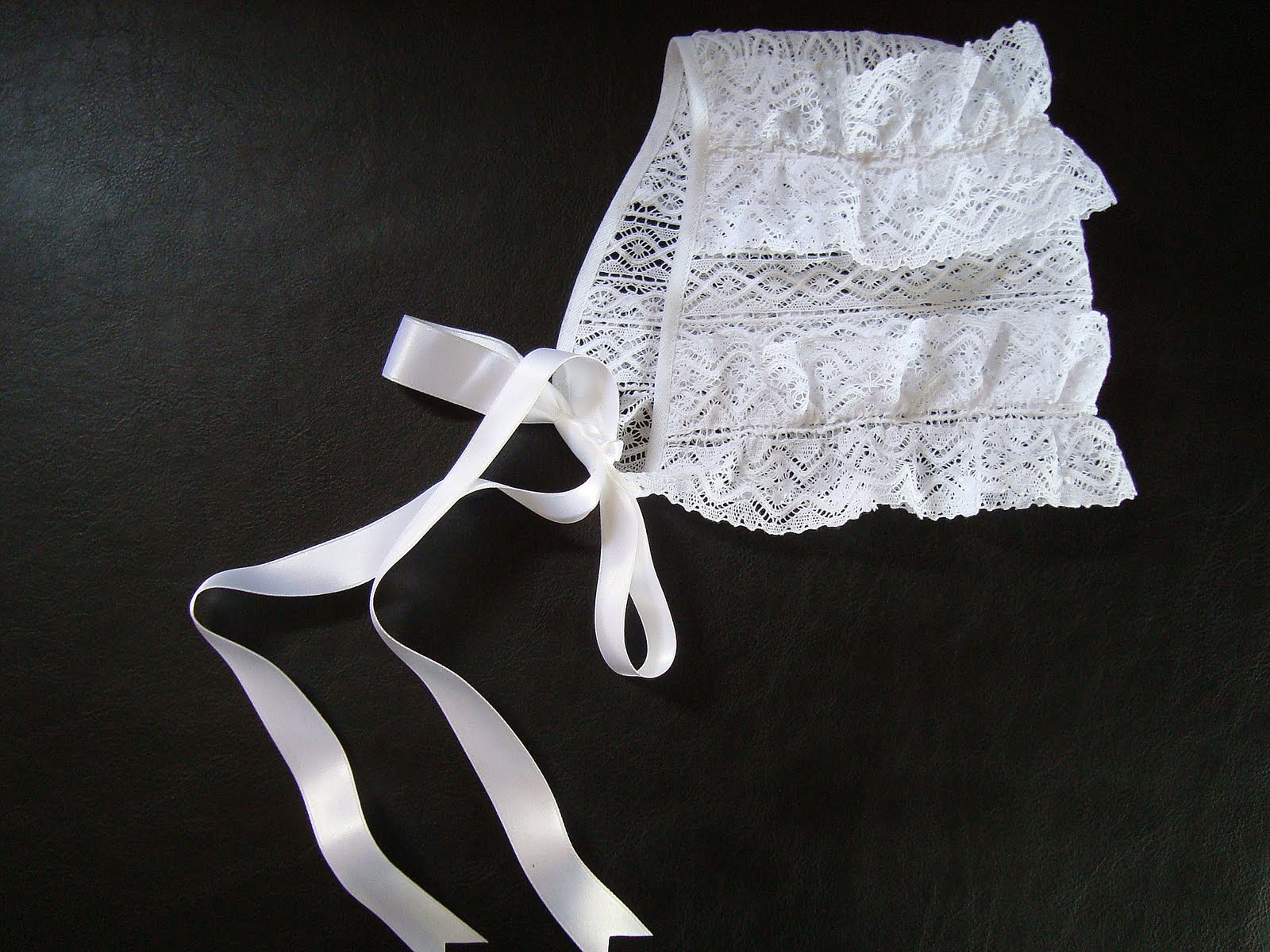 | Touca em cambraia de linho e renda |