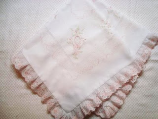 | Manta em fustão rosa bordada em crivo |