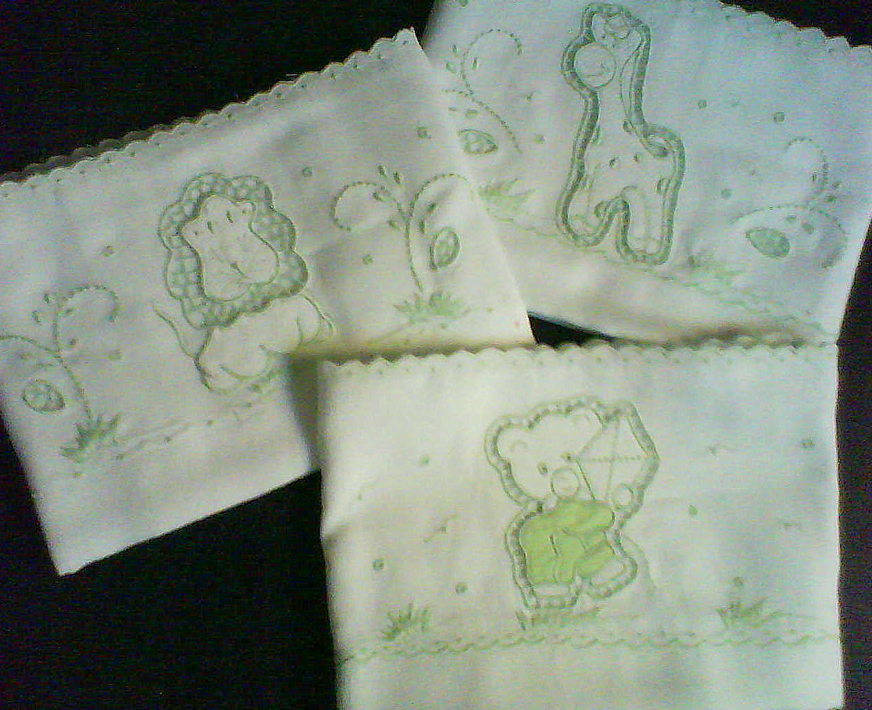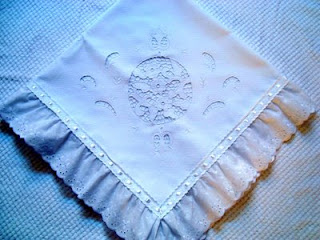 Mantas de fustão de algodão, cambraia ou piquê (à escolha), bordadas em richelieu ou crivo, motivos diversos. Com passa-fita e acabamento em bordado inglês (tira bordada) também 100% algodão.