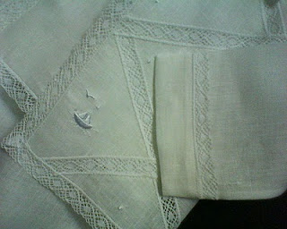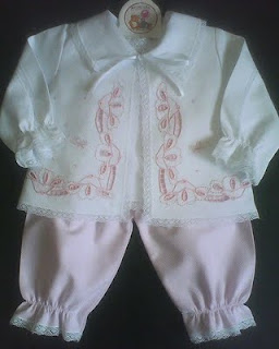 Conjunto 01 -  bordado à máquina com rendas de entremeio
