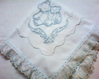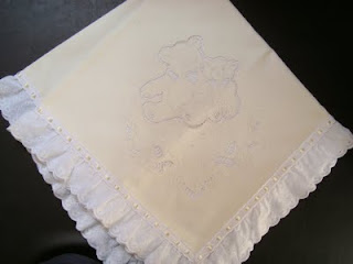 Manta em piquê masculina com bordado richelieu feito na cambraia de algodão - ursos