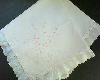 Manta em fustão rosa bordada em crivo